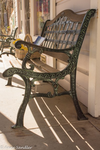 The bench outside the beauty shop.
