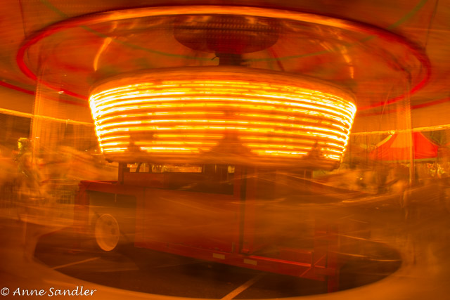 The carousel at slow shudder speed. You can still see the horses and the mechanism that runs the carousel. Next image