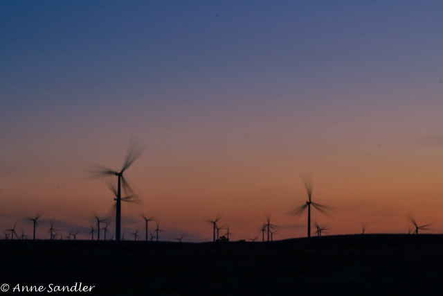 The sun is behind the horizon. I can now get some slow movement in the windmills.