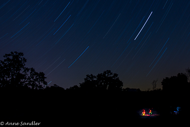 Last shot. I moved the set up away from the North Star and ended up capturing the lights from astronomers who were imaging. The lights are coming from their computers. F/3.6, 18 mm, 30 minute exposure, ISO 100.