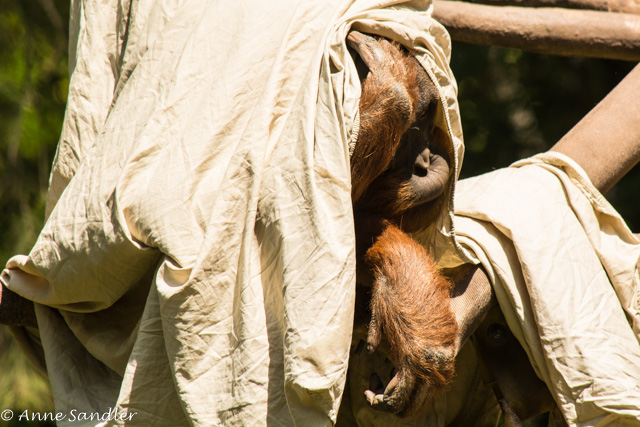 He played with the tarp for a few minutes and then went back in.