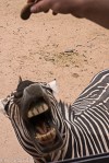 Ope wide! The zebras are not as polite as the giraffes, so we were not allowed to feed them.
