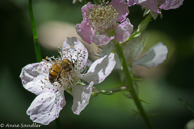 A bee gets nourishment.