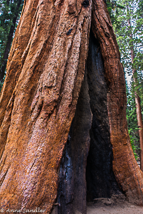 You can see the fire damage to this sequoia. Eventually the bark will close up the wound. May take hundreds of years! Previous image Next image