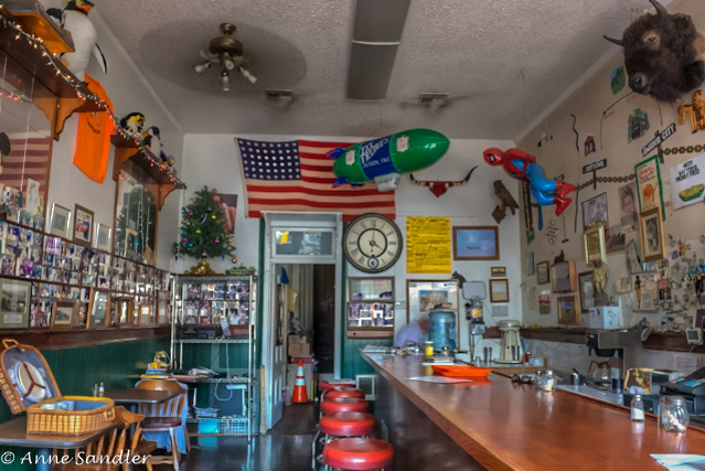 Fat Freddy’s Hot Dog diner. He was opening up and invited us in. His name is Carlos, but he told us how his shop got the name Fat Freddy’s–too long for a caption.