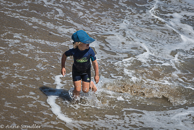This boy is testing the water.
