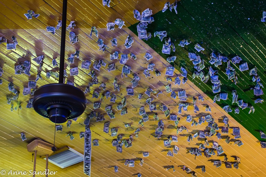 In Al The Wop’s bar. You can’t see it, but the fan is twirling and those are dollar bills on the ceiling! Previous image Next image