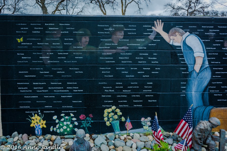 Also in the patio was this mural painted on the block wall–a tribute to the area’s veterans. Previous image Next image