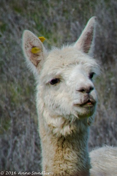 Okay, the difference between an alpaca and llama is the ears. Alpacas have short ears, as pictured, and llamas have longer ones.