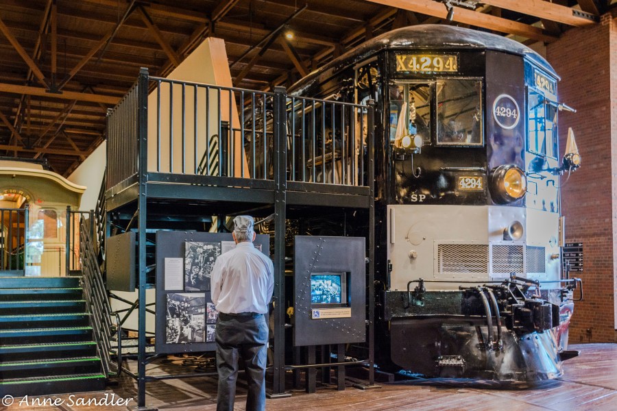 The cab of this steam train is open for people to go into. The last time my grandson visited, he sat in the engineer’s seat. It’s fun for kids.