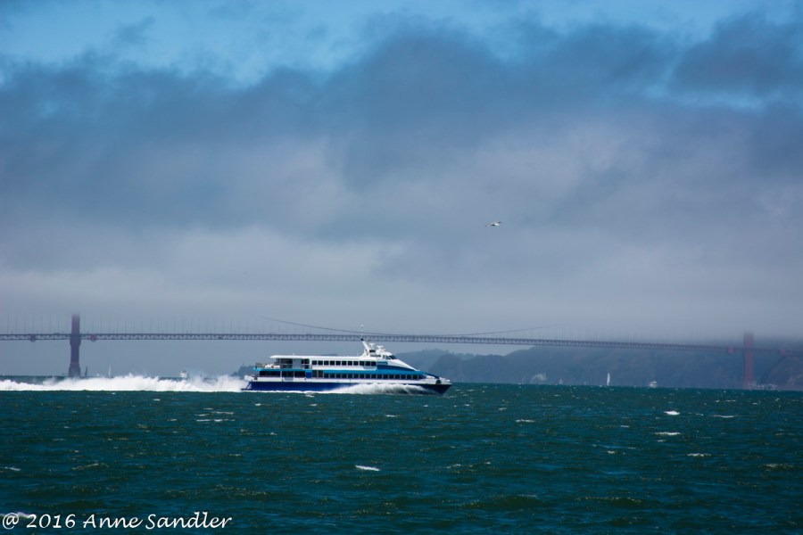 A boat making its way across the Bay.