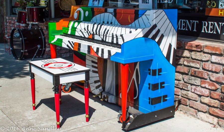 This piano sits outside a Woodland store and was donated to the town so people could play whenever they wanted. Previous image Next image