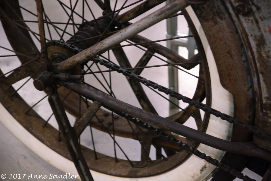 Wheel on an old motorcycle.