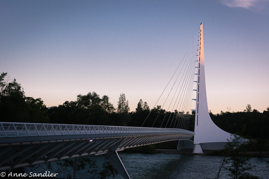 Although a wimpy sunrise, you can see the sun casting a glow on the bridge.