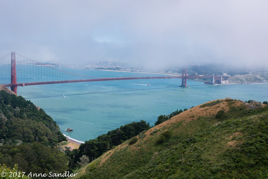 Sausalito and the Golden Gate in fog.