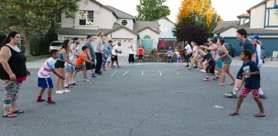 Egg toss in action.