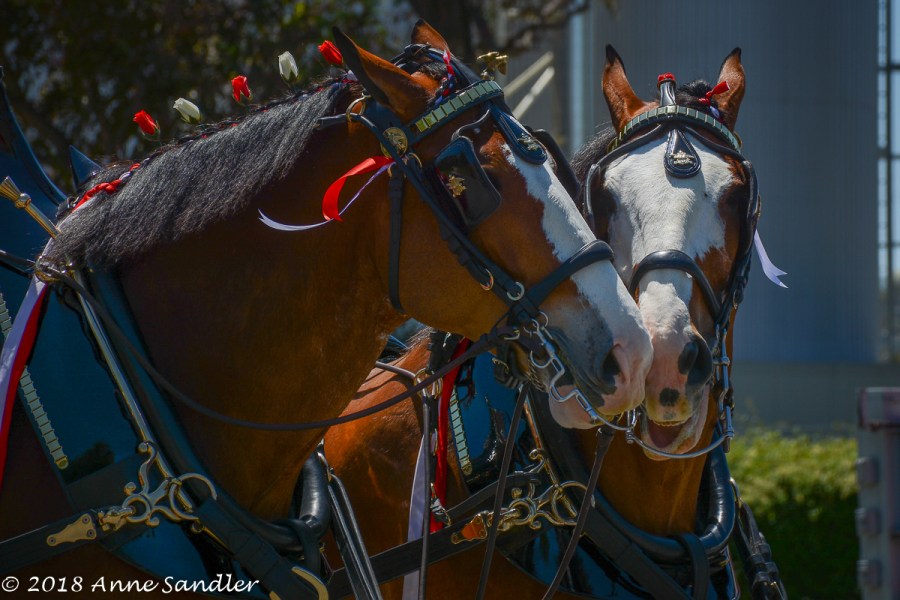 The horses interact while waiting.