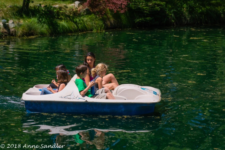 Paddle boating on the lake.