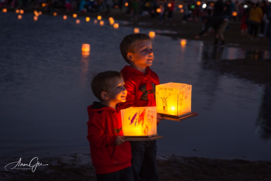 Boys are posing with their lanterns.