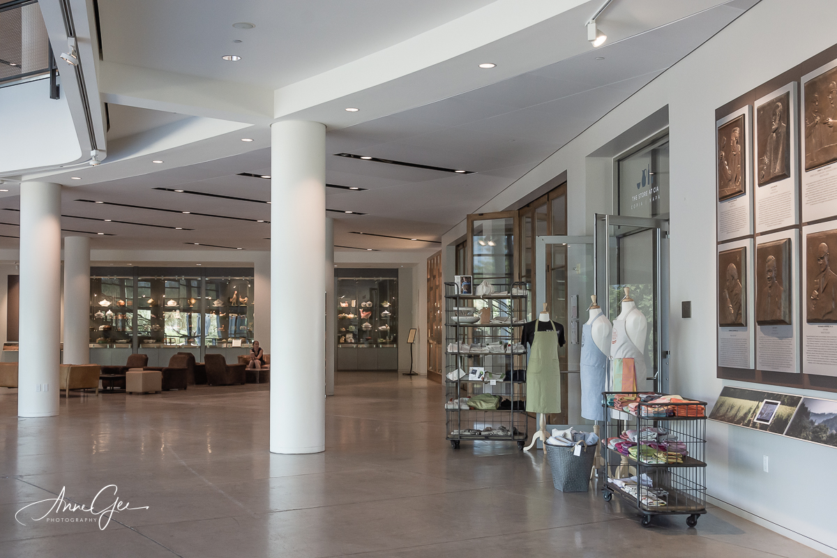 But we did find lovely things to photograph, including the vineyards. We first found the Culinary Institute of America (CIA) at Copia which is a branch campus of the private culinary college. The building was simply beautiful, inside and out! You’ll find a store that has everything “kitchen,” a Julia Child exhibit and exhibition of her husband Paul’s photography.