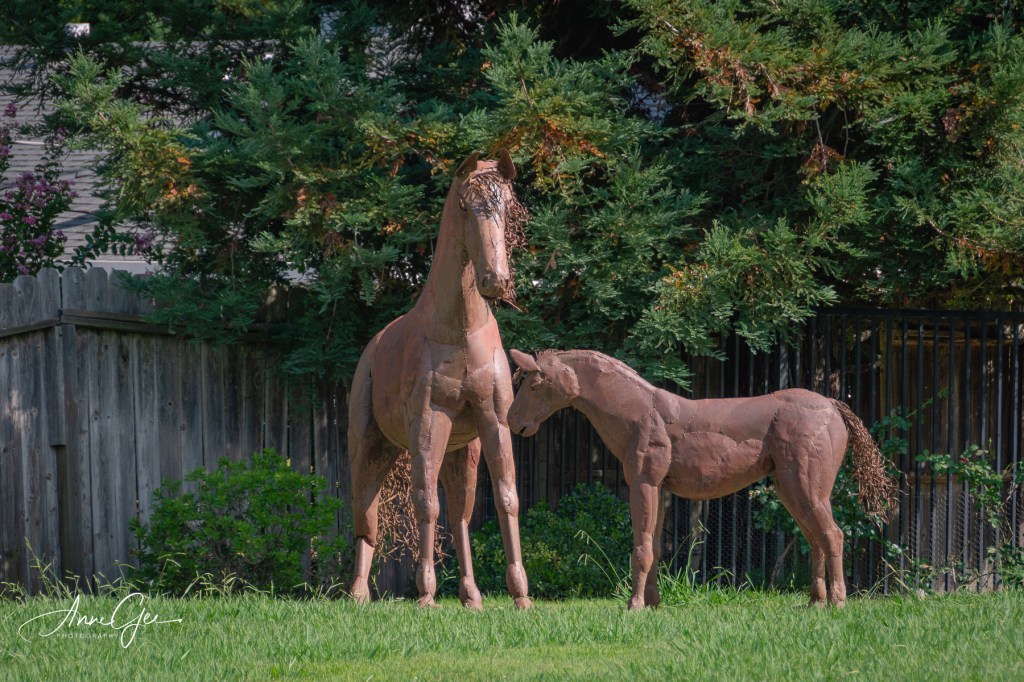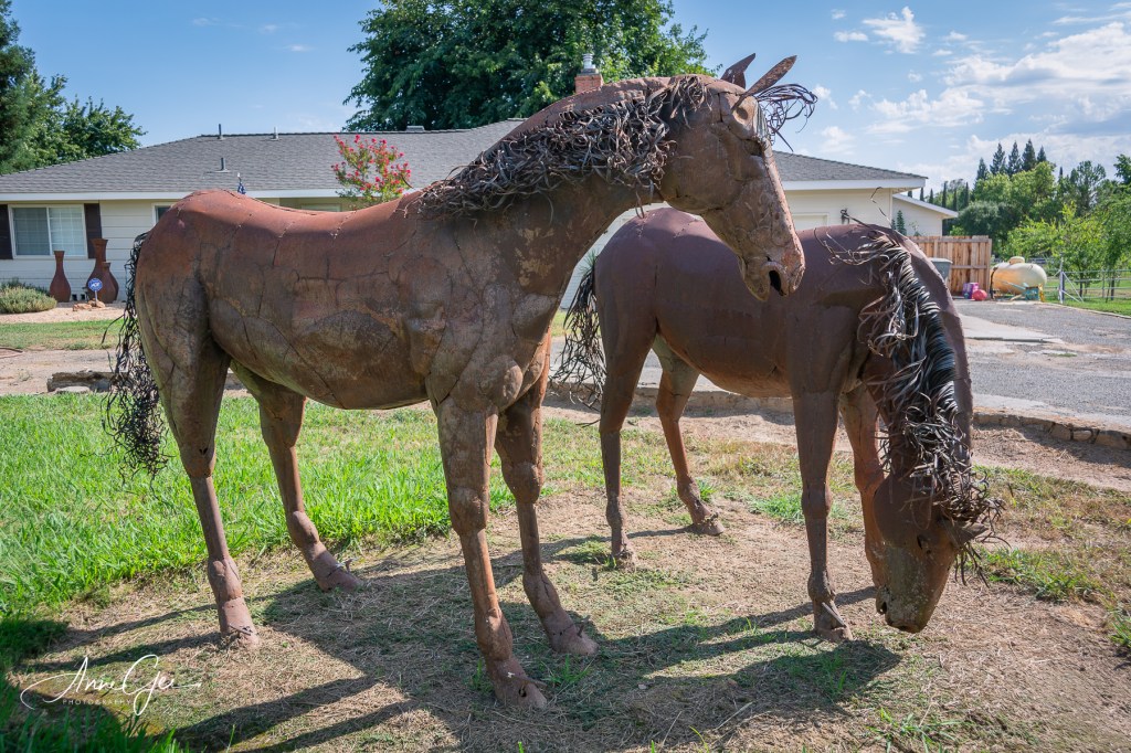 Metal horse sculptures.