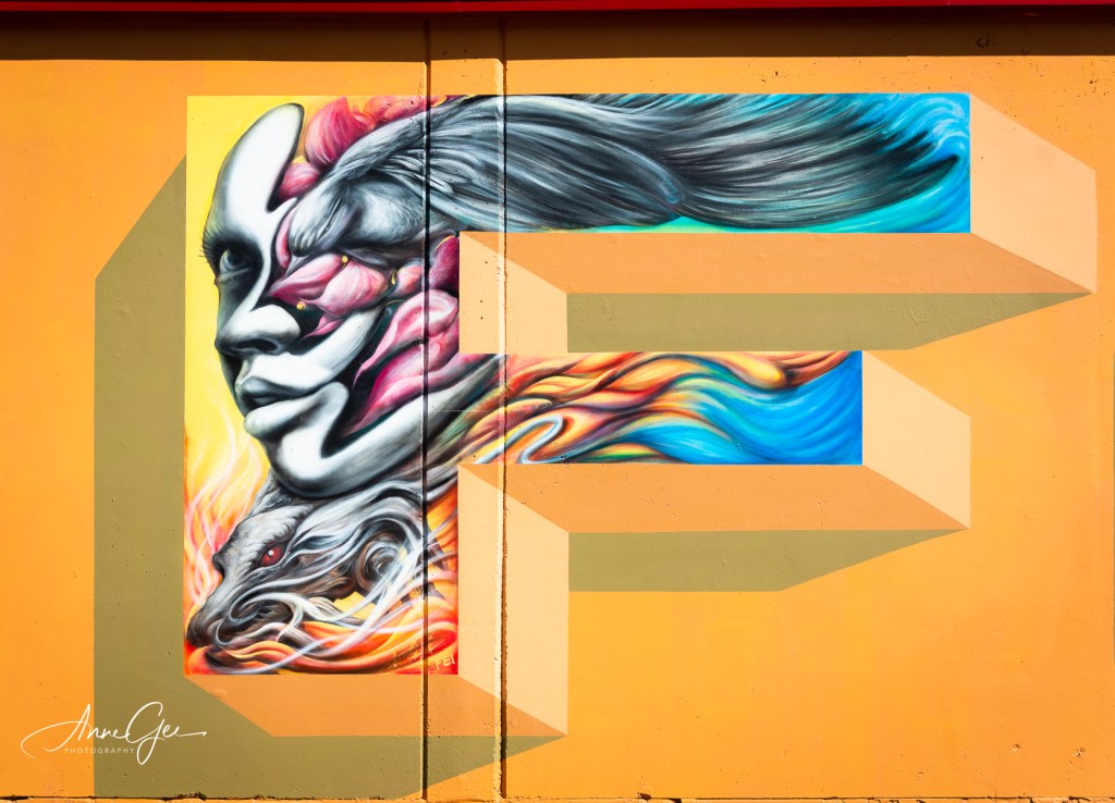 This mural honored California. Each letter was done by a different artist. Sorry, they are in the order that I shot them!