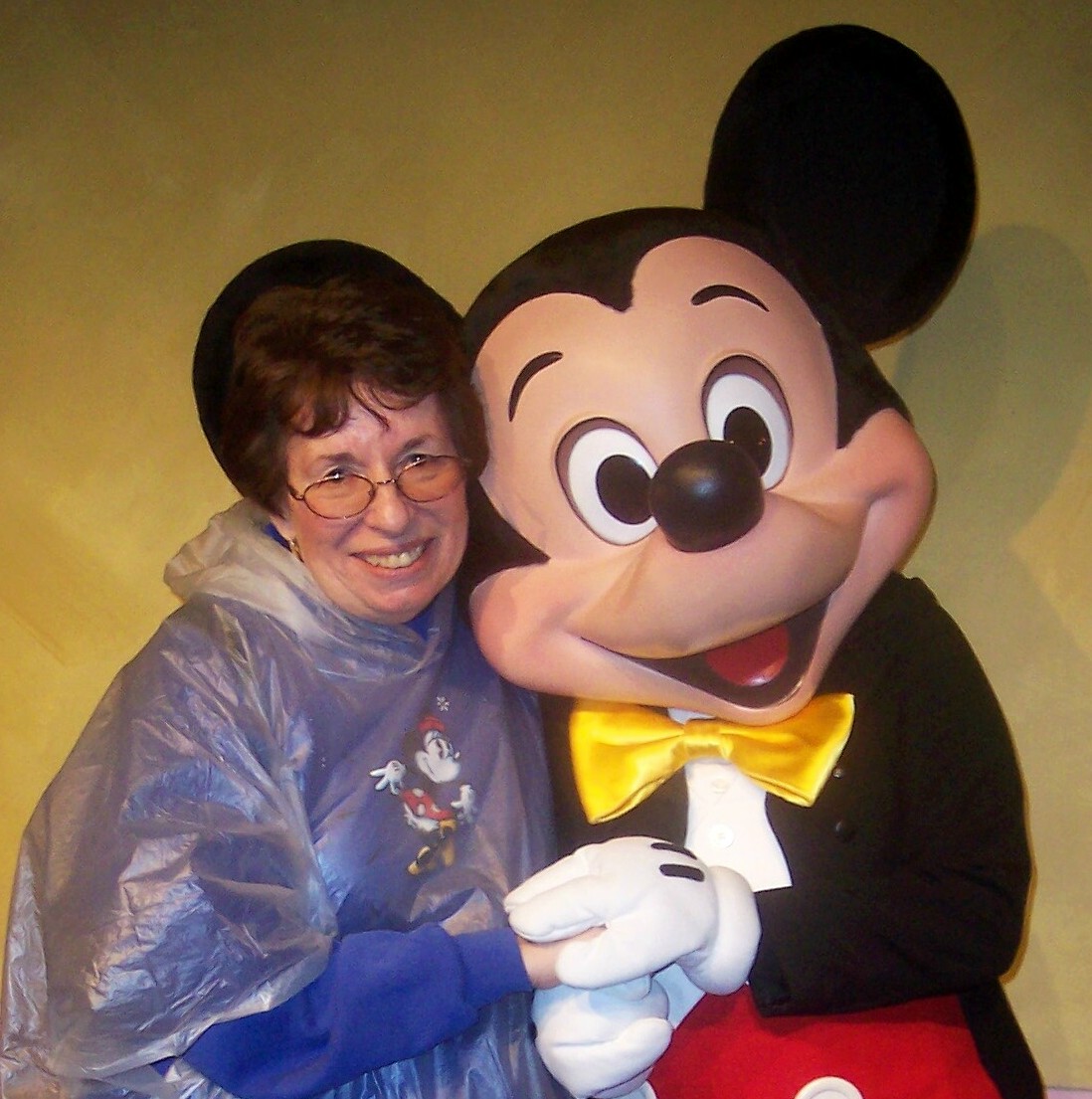 My love for the park never changed. One sweet memory was when Richard and I went on our own in 2006–no kids. I had to see Mickey Mouse. My collection of Mickeys is a story for another blog. We stood on line outside Mickey’s house in Toon Town with all the other parents and kids. After what seemed forever, we got to Mickey. “Where’s the kid?” His helper called out. “Here I am,” I yelled. This is the result.