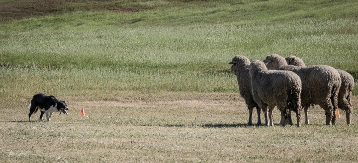 Over the hill were four sheep waiting to be herded down the hill, through two obstacles on the course and finally into the ring set off by traffic cones. The handler stands on the flat land more or less between the obstacles and ring. I’m hoping you can get somewhat of a picture in your mind. My description is not very good.