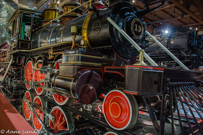 Trains. Now on to the California State Railroad Museum in Old Sacramento. This is always a fun place to take a camera. This old train was sitting on mirrored glass. The mirrors were also overhead and to the side. What fun I had. These are not the only images of this fantastic opportunity I took that morning. First is the train reflected on the glass. Second is the side of the train reflected on the glass above. Last is the top of the train in reflection.