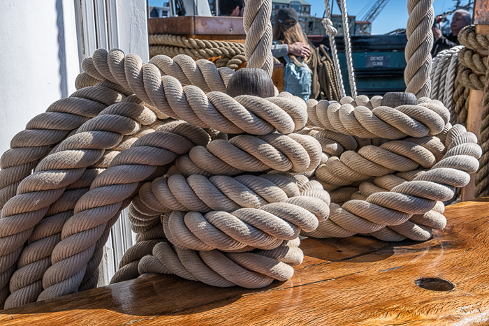 Although I am complaining about people, I managed to isolate myself by taking closeups. Here’s what the decks below looked like. The crew slept in hammocks while the officers had better accommodations.