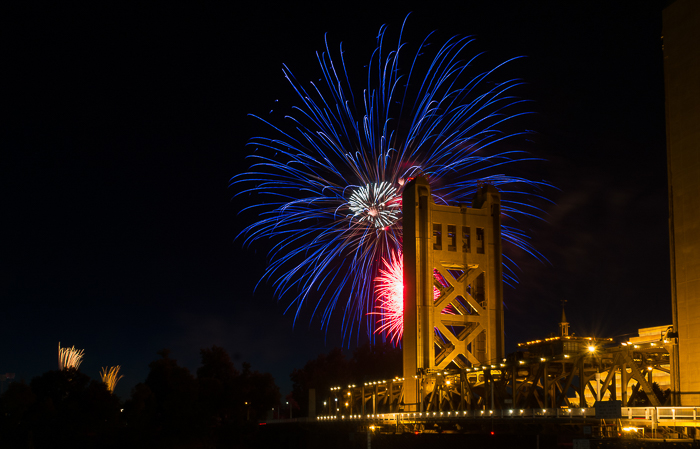 My last picture is of the Tower Bridge in Sacramento. The bridge entrance is framed by street lights. The car light trails make this frame seem like an open box.