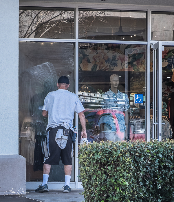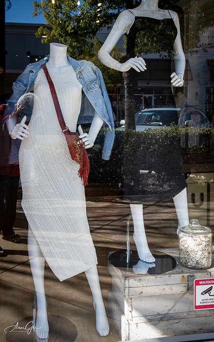 I am a dog mom and love that little Schnoodle. Windows must be washed for us to do window shopping. This last one is a reflection of across the street with the ghost like image of a male mannequin in the store window. You can see him in the window being washed.