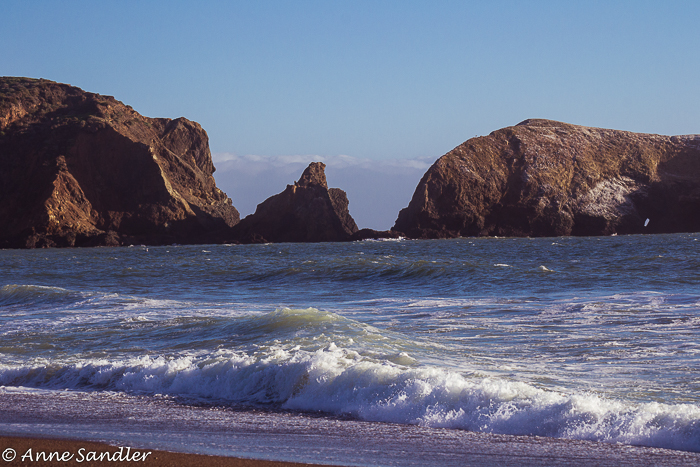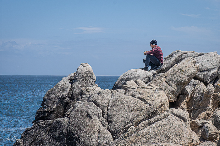Then there are the rocky beaches where we sit and watch the waves hit the shore. Like the Marin Headlands in Northern California. The man in the second photo is wave watching at Pacific Grove on the California coast.