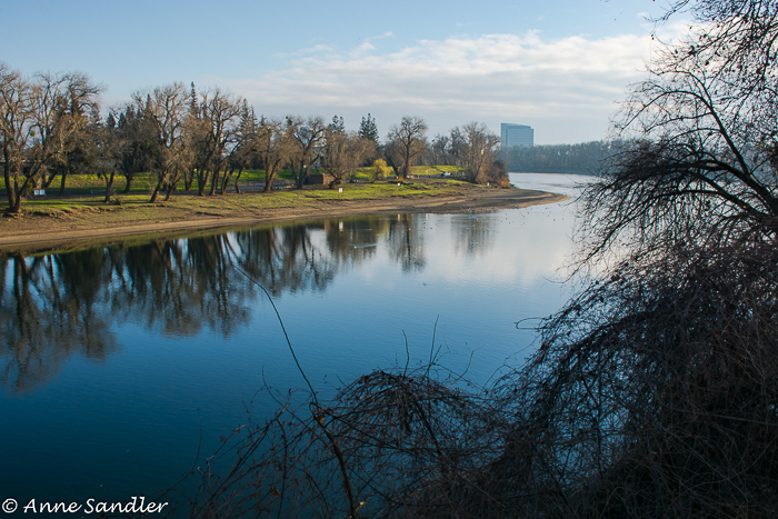 Here in Sacramento, rivers are easy to find. River shorelines are muddy and rocky with some areas reserved for swim areas. This part of the river is located at the confluence of the Sacramento and American Rivers. I believe it’s part of the Sacramento River. The American River is noted for riding the rapids, while the Sacramento River is used more for industry.