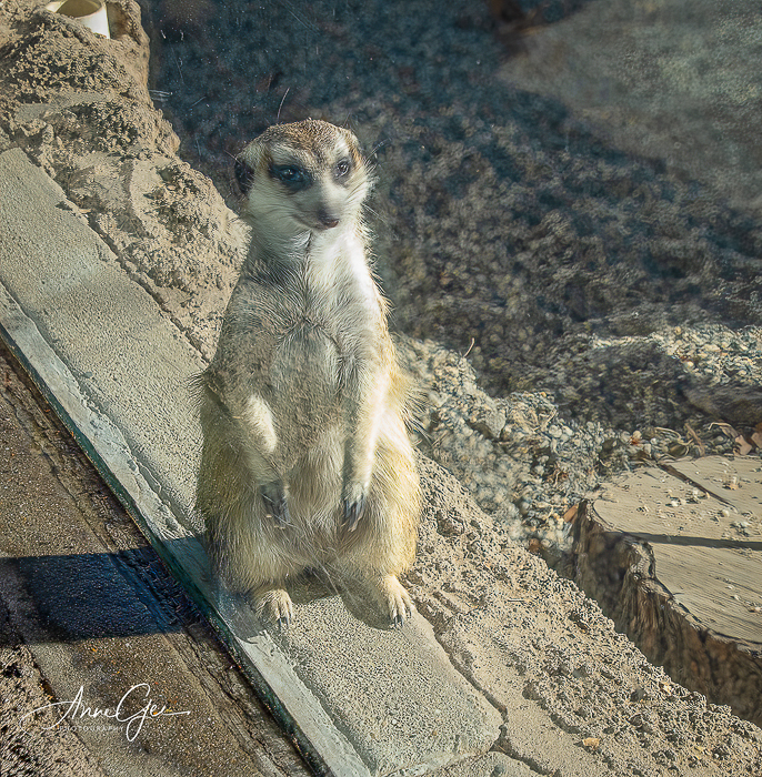 One cutie that I was able to photograph through plastic is the small Meercat. Of course we want children to come and enjoy the zoo. But they do leave little hand prints on the plexiglass. This time, I got lucky.