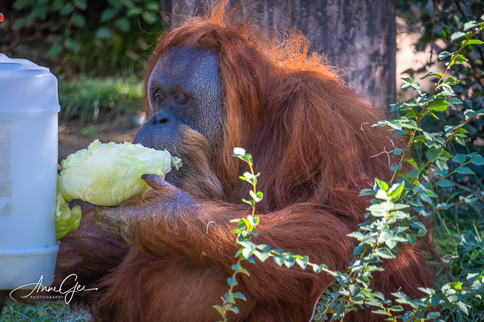 The Orangutans were also eating. They would grab a head of lettuce from a plastic box and start chomping. I’m thinking we arrived during breakfast.