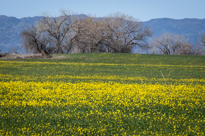 We have a lot of almond orchards in the Yolo County countryside. When the trees blossom, they are so beautiful. When they are bare, you find a carpet of mustard plants.