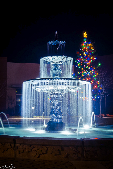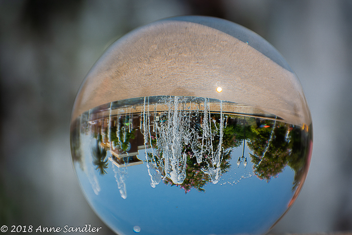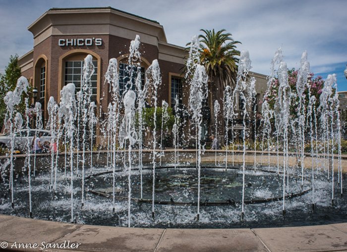 We have a Roseville shopping center called The Fountains, but there is only one fountain. But, it does put on a spectacular show. Here, I caught the water in slow shutter speed, regular and through a crystal ball.