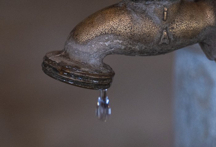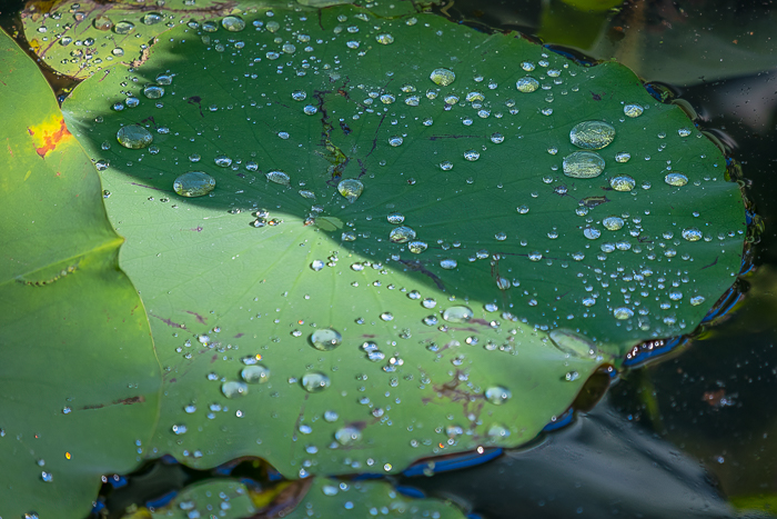 Water also shows up in drops. They can be dropping from a faucet or riding on a pond leaf.
