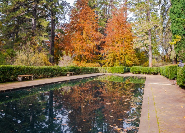 Let’s travel north up Highway 49, still in the Sierra Nevada mountains, to the Empire Mine State Historic Park. We happened to be at the right place at the right time–when the Gingko trees were changing color.
