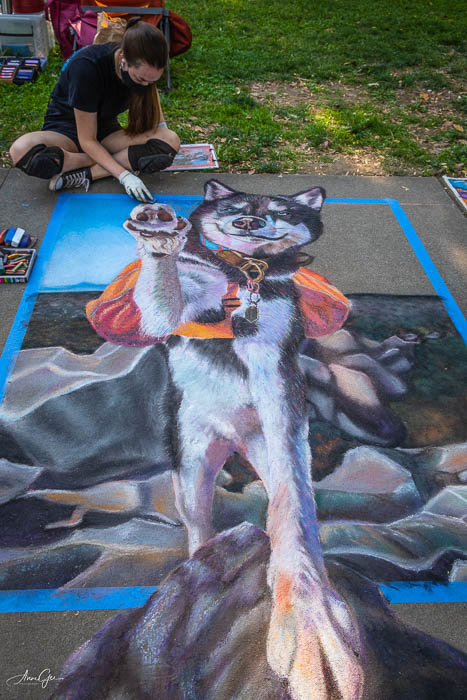This is one challenge I’m not twisting and putting my own spin on for John’s Art in the Park. I’m presenting two pieces of public art that I think are amazing. The first is our annual Chalk It Up held every September in Fremont Park. This park is a large square block where chalk artists gather annually to sketch and paint images. The amazing part for me is that these art works will disappear within a few days. To put that much effort into creating a work of art only to have it gone, takes something special from the artists. We usually get there early to avoid the crowds. These images were taken in 2021 and have been posted on my blog. I’m hoping that you will enjoy seeing them again or appreciate them for the first time. The artists paint with liquid chalk or color with regular sidewalk chalk.