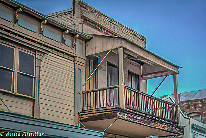 What fun I had reprocessing them, trying to get them to look less like a painting. Here’s the bunch I worked on. All of them were taken in small country towns. Wood structures with wood balconies. Today, I wouldn’t use HDR for these photos. However, Lightroom will process HDR images without the painterly look. I do like the “look” in the last photo.