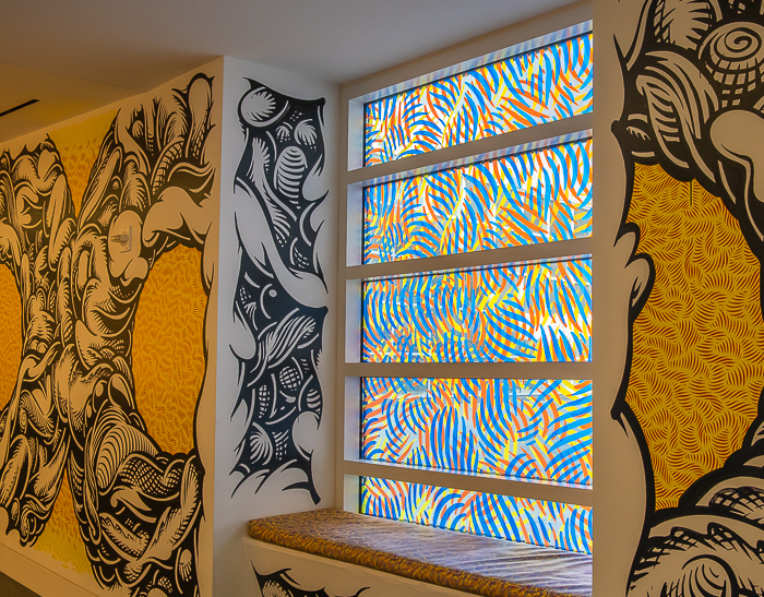 Again, do as I say, not as I do. Use polarizing filters especially when photographing on glass. I’ve been lucky—and lazy! I love capturing interesting window reflections. These images were not photographed in bright sunlight. The first is a window reflection of a building across the street. The pink photograph is of a beauty salon and the trees across the street.