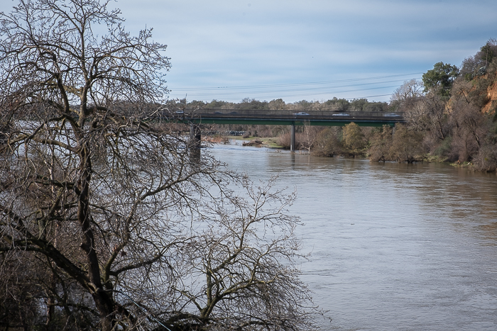 Last Thursday was the one day the sun had a chance to warm us up and show us how light can be good for photography and the human soul. Marlene and I took advantage of nature’s sunshine and went to photograph our local Fair Oaks Bridge, in Fair Oaks, that spans across the American River. If you didn’t know the water level before, it’s difficult to understand how high the water level is now. As of this writing we are expecting more rain tonight.