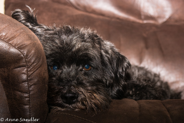 Week 17. Gem. I found it hard to photograph a black dog on a brown couch.