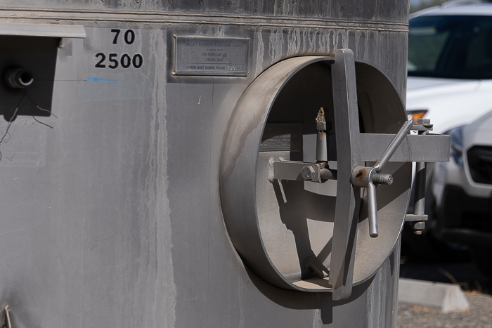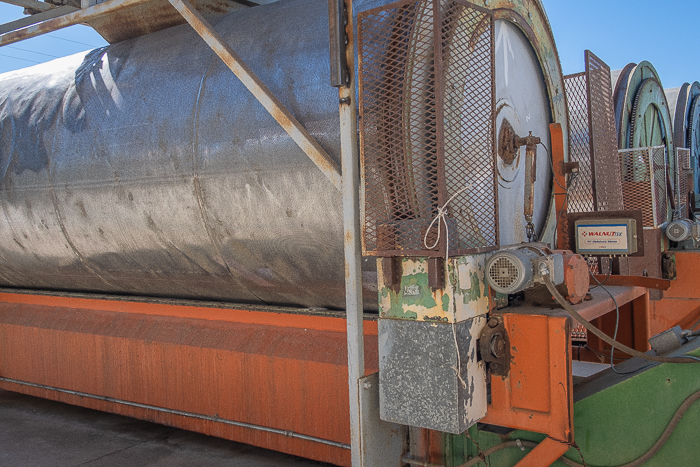 I’m not sure what is in these containers. Grapes? Wine? I’m not sure of the process, and we are not to disturb the workers.