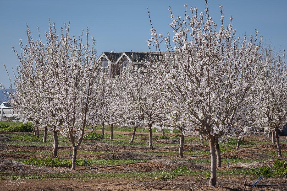 We photographers respect the orchards and do not go into them. We photograph from the roads, using long lenses. When I saw that one farm was opening their orchard (for a small fee) for us to walk through, Ray and I made a plan to go there. We knew it was risky given the winds we had and were still having that day, but we went anyway. This farm was outside of Davis and closer than those in Capay Valley.