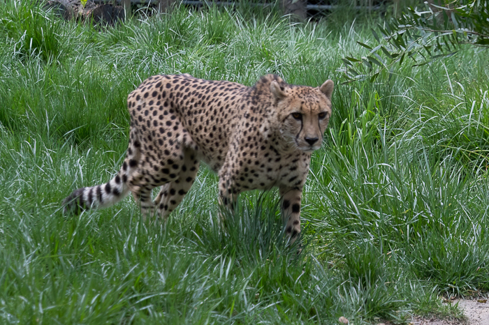 The Cheetahs, having finished their bones, were prowling their enclosure.
