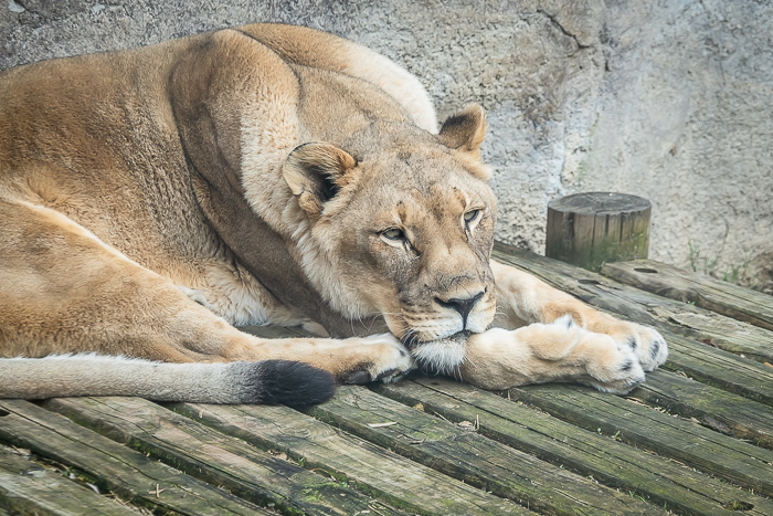 It wasn’t just a great day at the zoo, it was an exciting day! Why? I was able to see and photograph our new lion Slamson II. The lion enclosure had been empty since both lions died; Kamau in June 2023 and Cleo in October 2024. Cleo passed at age 19 and was one of the oldest lions in the Association of Zoos and Aquariums African Lion Species Survival Plan population. Slamson II came to the zoo via a partnership with the Sacramento Kings basketball team, whose mascot is a lion called Slamson.