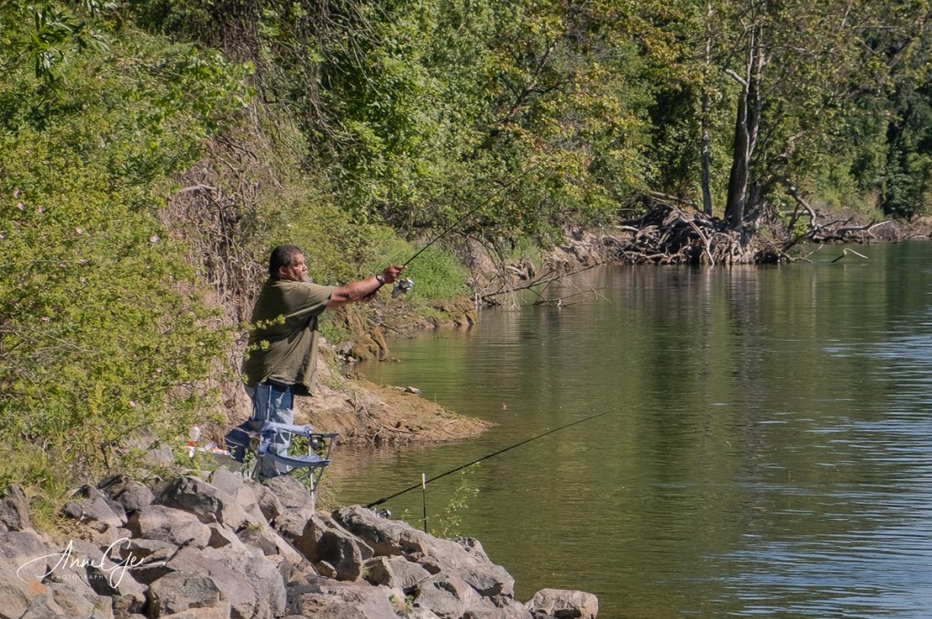 As we drove on, I spotted a sign that directed us to a boat ramp. Jean said she wanted to shoot near water so wouldn’t a boat ramp be perfect? It was a great stop. We came upon pelicans, fishermen and a beautiful section of the Sacramento River.